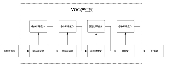 根據(jù)涂裝生產(chǎn)工藝,涂裝廢氣主要來自于前處理、噴涂、烘干過程,所排放的污染物主要為:前處理過程中產(chǎn)生的粉塵或酸霧,噴漆時產(chǎn)生的漆霧和有機溶劑,烘干揮發(fā)時產(chǎn)生的有機溶劑。漆霧主要來自于空氣噴涂作業(yè)中溶劑型涂料飛散的部分,其成分與所使用的涂料一致。有機溶劑主要來自于涂料使用過程中的溶劑、稀釋劑,絕大部分屬揮發(fā)性排放,其主要的污染物為甲苯、二甲苯等。涂裝中排放的有害廢氣主要集中在噴漆生產(chǎn)線上,其中噴漆室、流平室、烘干室是廢氣的主要發(fā)生源。